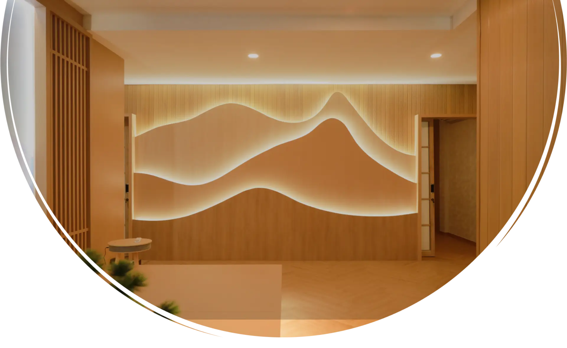 YU Onsen & Spa ตกแต่งแบบมินิมอล สบายตา โดยได้แรงบันดาลใจ มาจากการออกแบบภายใน แบบญี่ปุ่นแท้ๆ เพื่อให้ทุกๆ ท่านได้เปลี่ยนบรรยากาศ ตั้งแต่หน้าร้านเข้ามา ก็จะรู้สึกเหมือนได้ย้ายตัวเอง ไปยังประเทศญี่ปุ่น ให้ความรู้สึกสงบ ผ่อนคลาย ผ่านการใช้เฟอร์นิเจอร์ไม้ การใช้รูปทรงเรขาคณิต อย่างทรงเหลี่ยมและทรงกลม รวมไปถึงลวดลายเอกลักษณ์เฉพาะ ของญี่ปุ่นอย่าง “ชิปโปะ